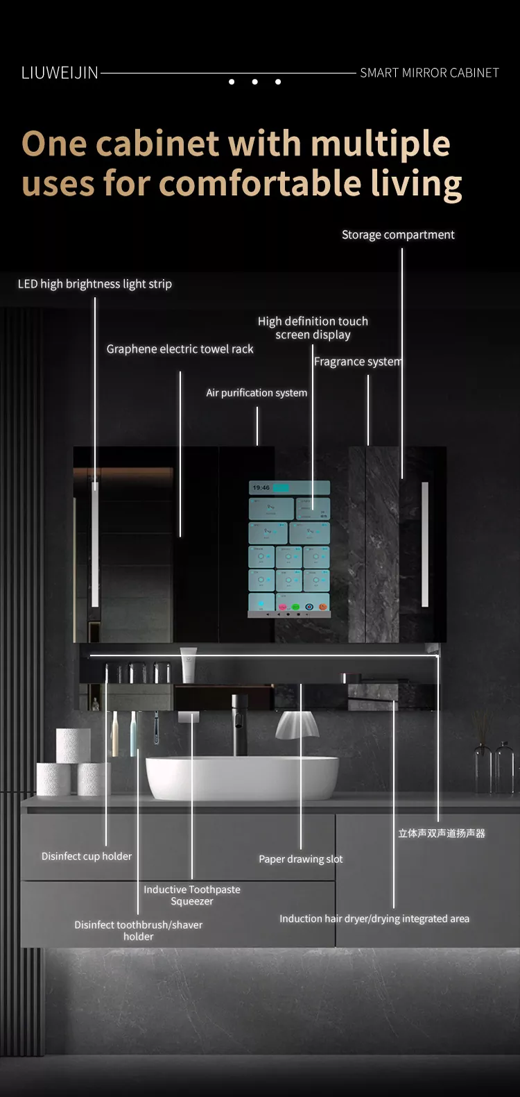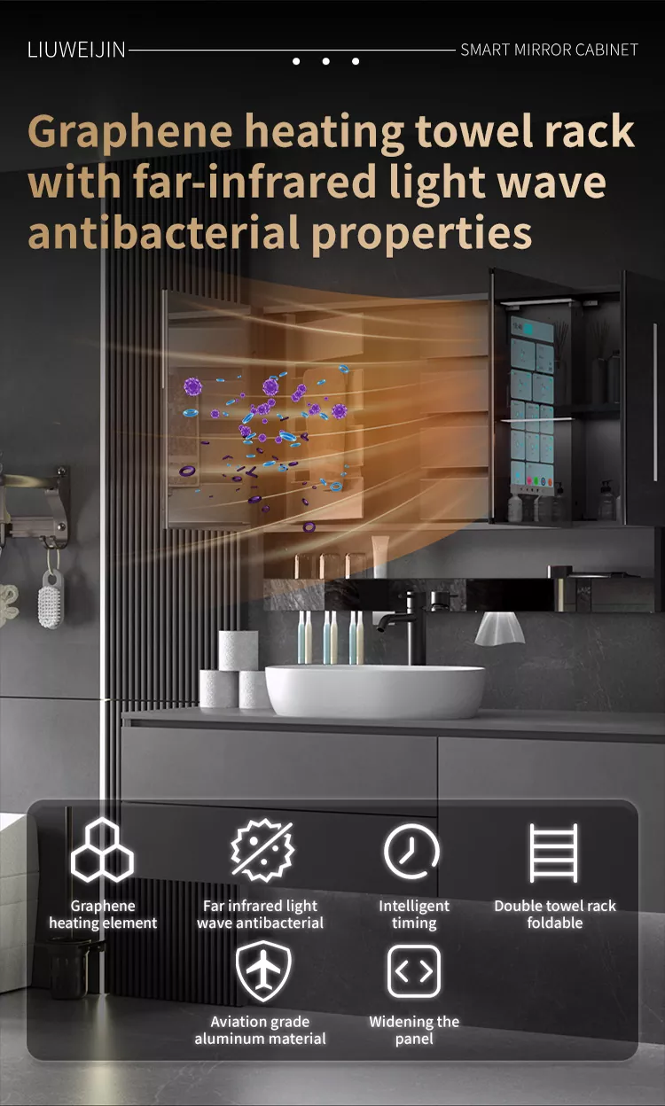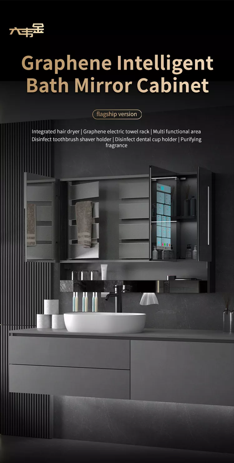 Liuwei Jinshi Graphene Intelligent Bath Mirror Cabinet прави пътя ви на измиване по -опростен, чистачката за почистване и по -свеж в банята, а животът е по -удобен.
